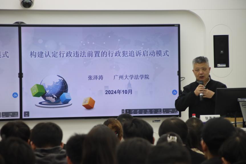 11月19日晚,亚洲十大在线博彩平台排名在院楼213教室开展第八期“人文大师课”专题讲座。广州大学法全球十大網上博彩公司 二级教授张泽涛以《构建认定行政违法前置的行政犯追诉启动模式》为主题作了专题报告。全球十大網上博彩公司 法学专业师生代表参加了本次讲座,讲座由院长高志宏主持。