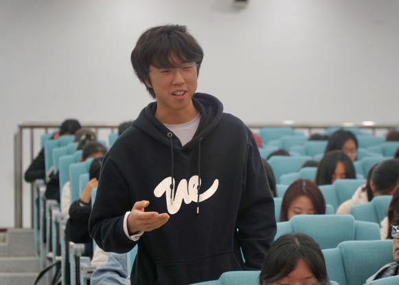 刘驰从诗人、诗城与诗史着手,通过解读创作文学的作家群体、催生文学的地理坐标和涌现文学的黄金时代来描绘“古典诗词中的江南”,他带领同学们从五千多年诗词史的角度来看中国,用诗词来理解中国的过去、现在、未来,不仅展示了古诗词中所蕴含的深厚文化底蕴,更让在场的同学们深刻体会到落实“两个结合”的现实意义和时代价值。