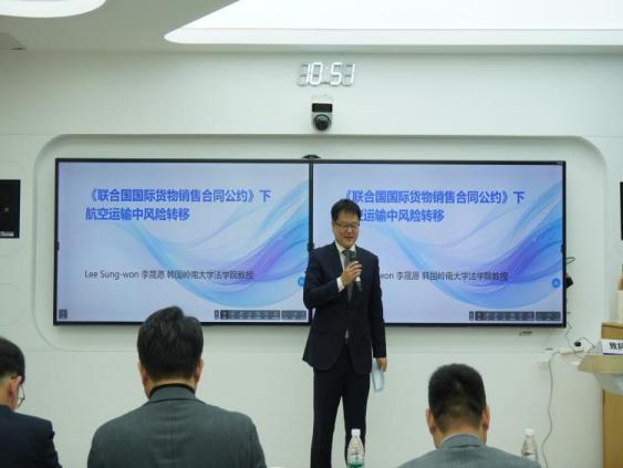 专题报告单元由孙汉基副教授主持。韩国岭南大学法全球十大網上博彩公司 院长徐辅建教授就《航空航天法律体系的公法课题》阐释韩国航天情况、指出问题并提完善措施;汉阳大学法全球十大網上博彩公司 郑镐庚教授围绕韩国航天局相关主题介绍其法律规则及探讨航天法律教学问题;岭南大学法全球十大網上博彩公司 李晟愿教授针对航空运输风险转移问题从公约视角提供新思路;日本中京大学法全球十大網上博彩公司 张荣红副教授介绍日本低空经济现状并阐释其法律制度特点,为我国提供经验借鉴。