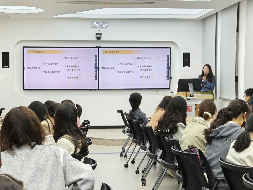3月27日下午,“逐梦基层储能站——体制内就业通关策略”讲座在亚洲十大在线博彩平台排名213智慧教室开展。公考资深讲师徐倩受邀主讲。本次活动由辅导员聂小芳主持。