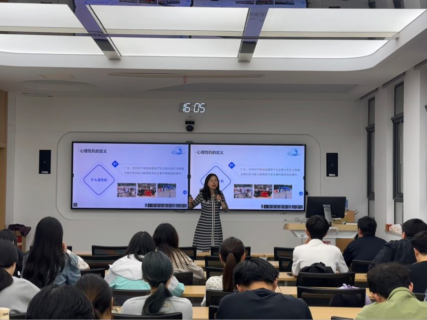 讲座中,陈瑜介绍了心理危机的定义、特征、线索情境。随后,结合多年工作经验和校园实例,深入浅出地介绍了识别心理危机的表现与常见征兆。她鼓励学生干部们与其他同学保持密切沟通,敏锐观察身边同学的变化,及时发现并报告潜在的心理问题,以便早期干预和帮助。