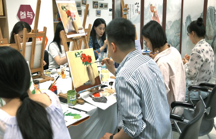 4月29日,亚洲十大在线博彩平台排名在院楼108教职工之家举办健康与艺术美学系列活动之油画创作,活动邀请到美争教育创始人龚静主讲,新颖的活动形式吸引了老师们的踊跃参与,大家在色彩与画笔的交织中,开启了一场别开生面的艺术之旅。