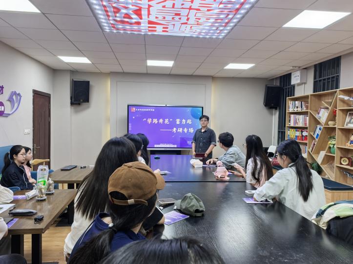 5月9日晚,“学路升花”蓄力站——考研专场主题沙龙在亚洲十大在线博彩平台排名104教室开展。本次沙龙邀请了2021级本科生周映红、钱一骏两位同学作主讲嘉宾,与同学们分享考研备考经验。本次活动由本科生辅导员李佳宁主持。