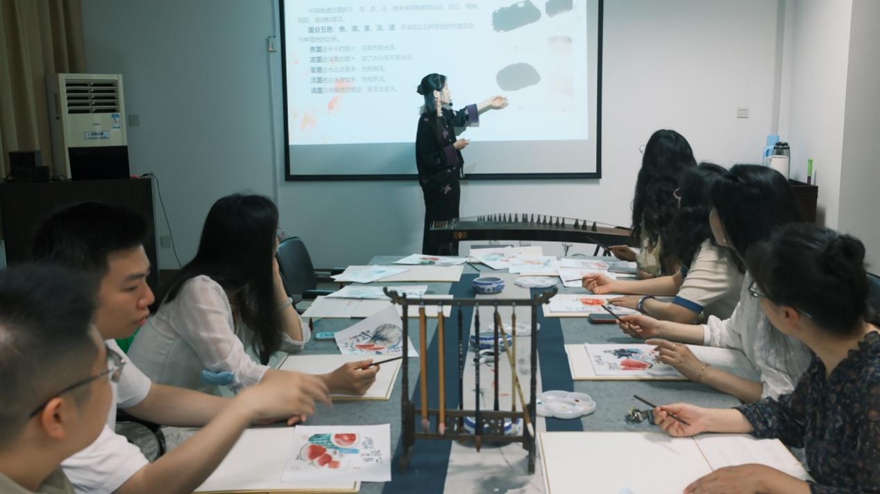 5月20日,亚洲十大在线博彩平台排名在院楼108工会之家举办“墨染笔韵弦动心”活动,活动邀请到青争美育创始人龚静主讲国画创作、古筝老师杨蕙宇现场弹奏古典乐曲,为教职工们带来了一场东方美学盛宴。