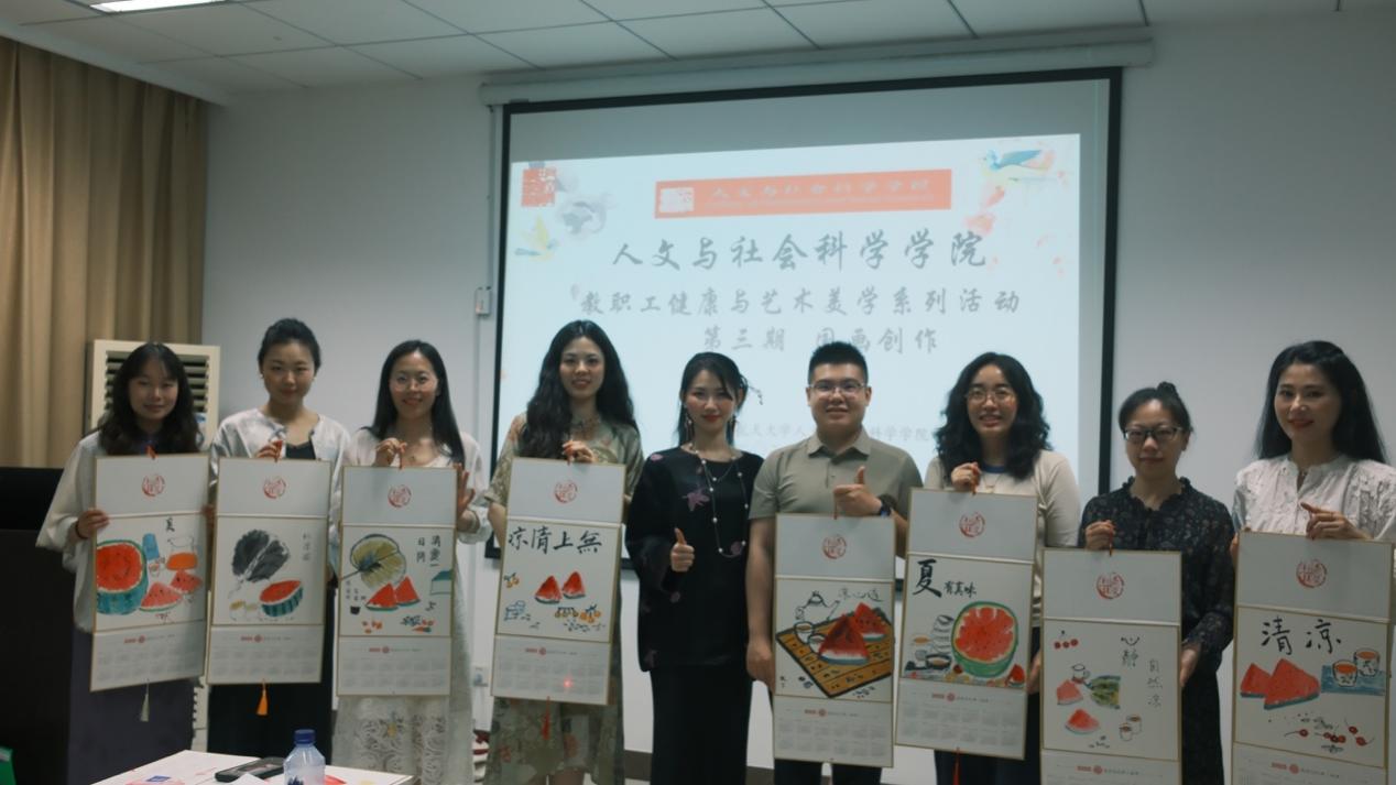 活动现场,龚静为大家详细讲解了国画的基本技巧。从笔法、墨法到构图法,让教职工们深入了解国画。授课现场一曲《渔舟唱晚》为现场增添了高雅的人文艺术氛围。绘画过程中,老师们大胆发挥,创作出了一幅幅精美的国画作品。