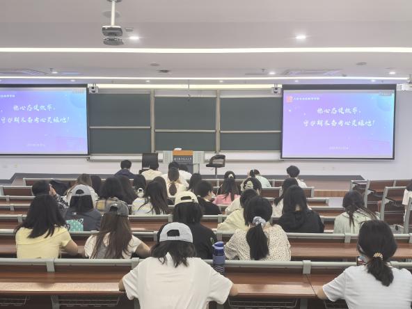 5月30日,亚洲十大在线博彩平台排名在天目湖校区T1307教室召开“稳心态提效率,守护期末备考心灵绿地”2024级本科生主题月讲评,月讲评由本科生辅导员安洪文主讲。