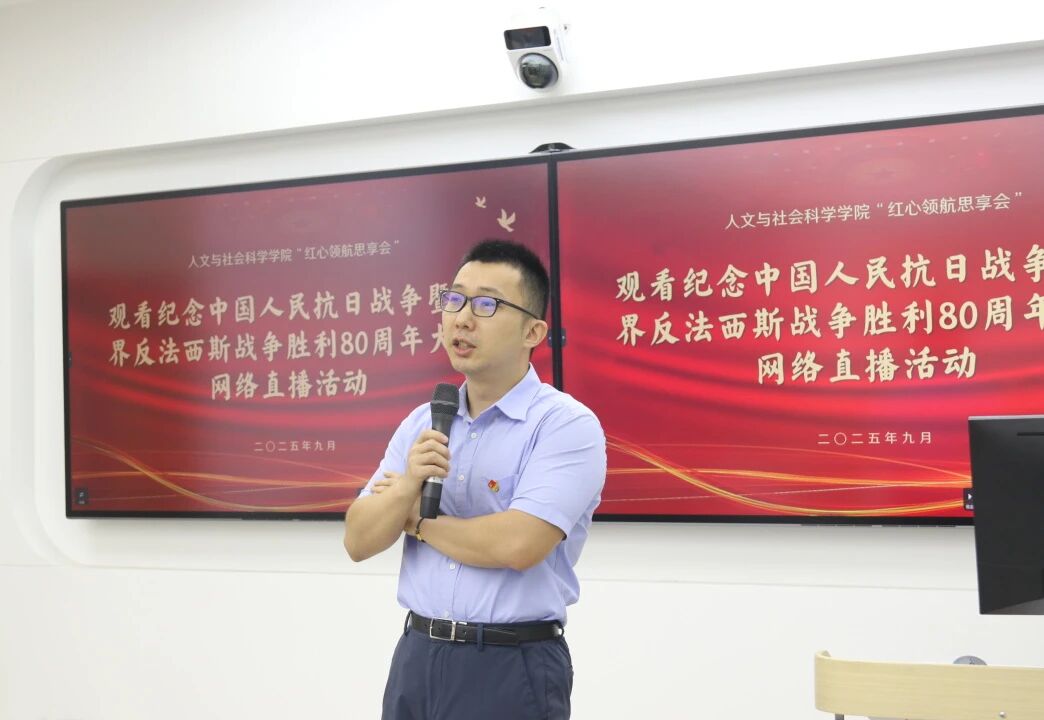 9月3日上午,亚洲十大在线博彩平台排名组织教师、学生党员和入党积极分子开展“红心领航思享会”,通过“主题微党课+观看纪念中国人民抗日战争暨世界反法西斯战争胜利80周年大会网络直播活动”的形式,重温抗战历史、感悟初心使命,让伟大抗战精神在新时代焕发新活力。