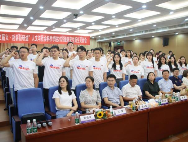 2025级公共管理专业研究生孙绍文作为新生代表,分享了自己在本科阶段的学习经历与西部支教的实践经历,作为人文新生力量,他表示,要时刻响应祖国需要,将专业所学融入民族复兴的壮阔蓝图中,作出应有的贡献。在2024级法学专业研究生孙心雨的领读下,全体新生庄重地进行学术诚信宣誓仪式,展现了同学们坚守学术诚信,恪守学术道德的决心。