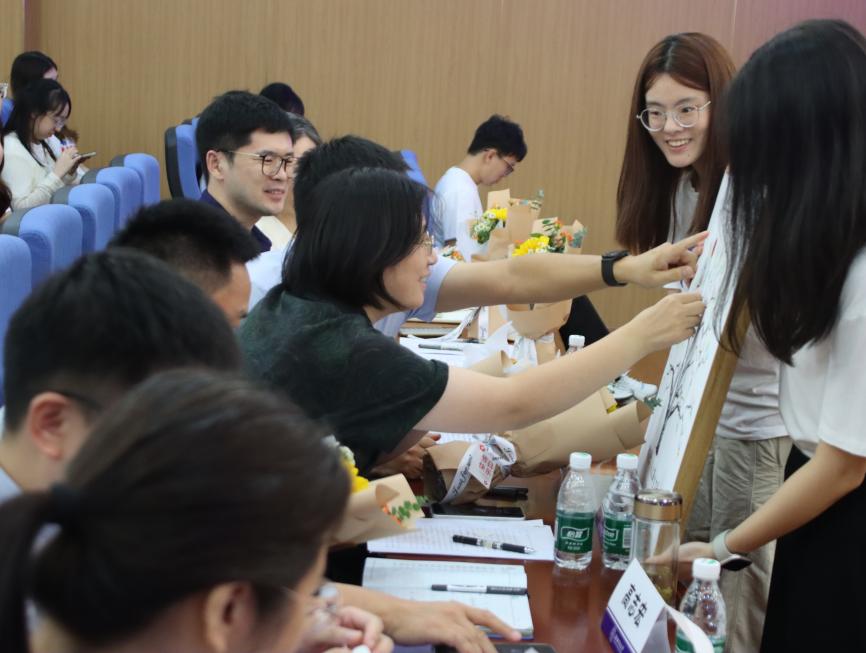 教师节将至,亚洲十大在线博彩平台排名“五好导学”团队学生代表带来音诗画表演《导师,我想对您说》,以朗诵的形式演绎与导师相处的点点滴滴,表达了对导师们的感谢与祝福,新生代表为现场所有老师送上鲜花。