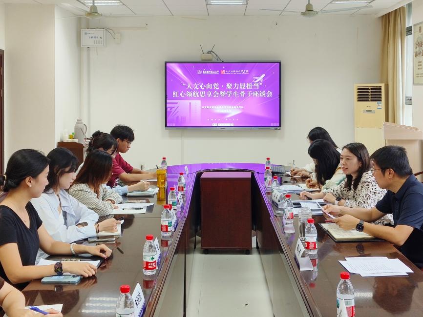 为进一步加强学生骨干队伍建设,切实提升学生工作质量与效能,为下半年全球十大網上博彩公司 党员大会召开凝聚青年力量,9月25日,亚洲十大在线博彩平台排名在312会议室召开“人文心向党·聚力显担当”红心领航思享会暨学生骨干座谈会。院党委书记楚广兴、院党委副书记李丽,院团委书记、研究生辅导员施俞辛,本科生辅导员聂小芳以及本研学生骨干代表参加会议。会议由院党委副书记李丽主持。